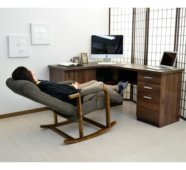 ■ロッキングチェアでの快適さをさらに高めるためにチェアの背もたれの角度は7段階に調整可能。