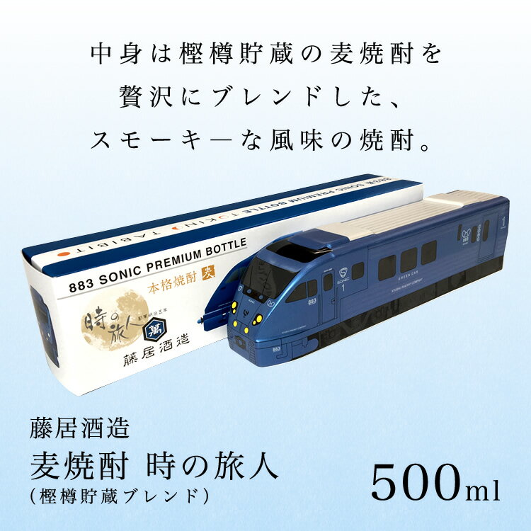 中身は樫樽貯蔵の麦焼酎を贅沢にブレンドした、スモーキ—な風味の焼酎「時の旅人(樫樽貯蔵ブレンド)」。