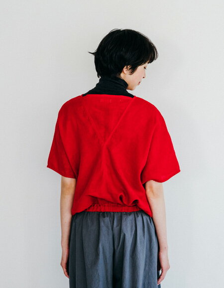 アブリル トップ 深めのVネックが顔周りをすっきりとみせてくれる、直線的なデザインのトップス。